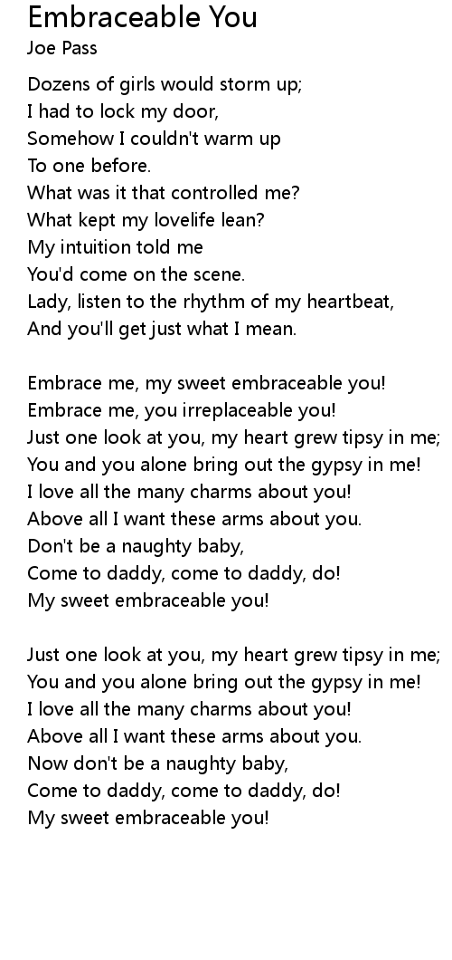 Embrace me, my sweet embraceable you!