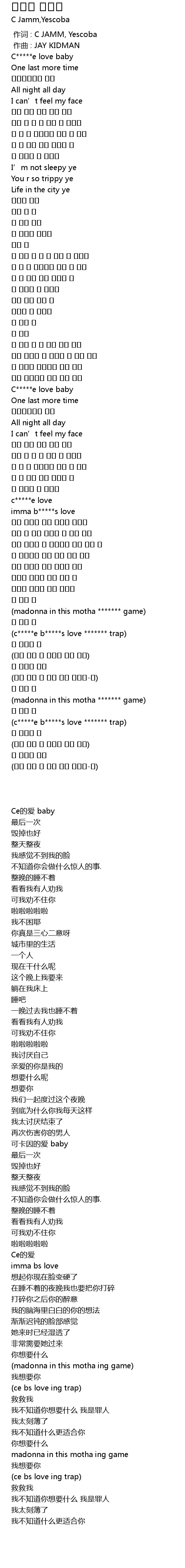 | [00:24.423] | Ce的爱 baby |