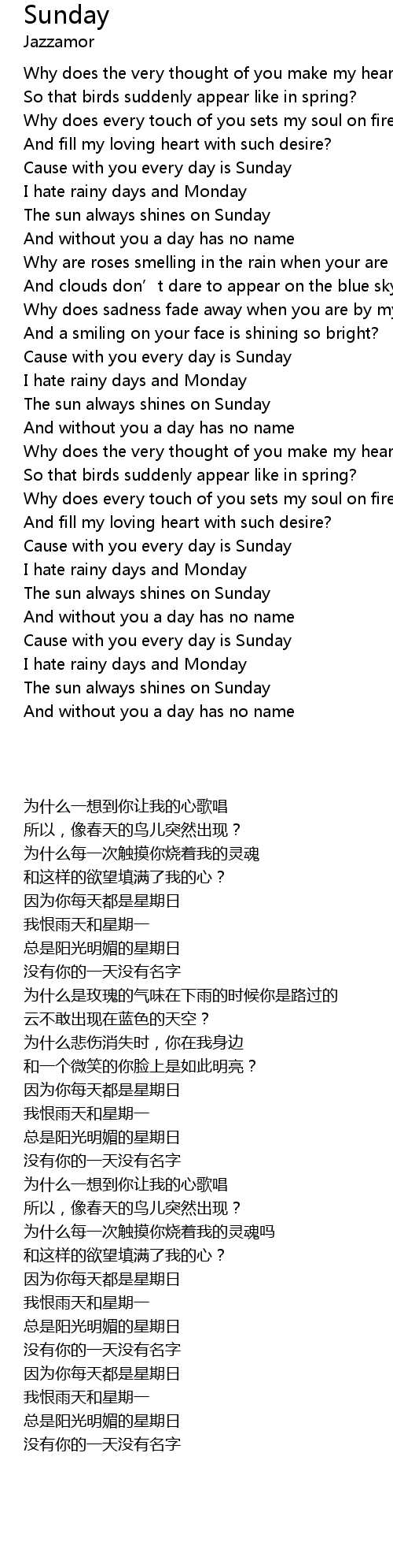 | [00:47.610] | 因为你每天都是星期日 |