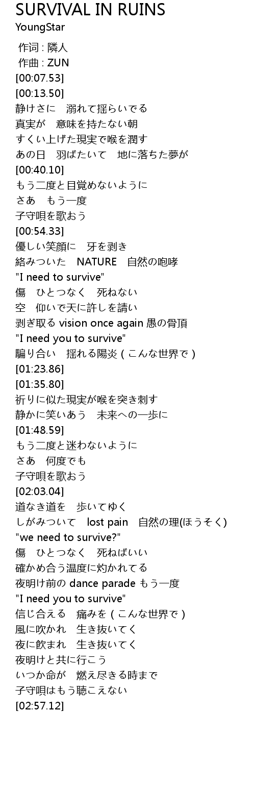 | [01:02.08] | "I need to survive" |