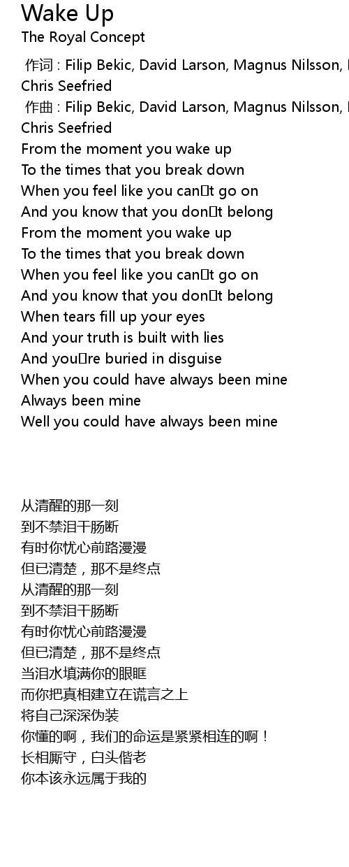 | [00:00.000] | 作词 : Filip Bekic, David Larson, Magnus Nilsson, Povel Olsson, Chris Seefried |