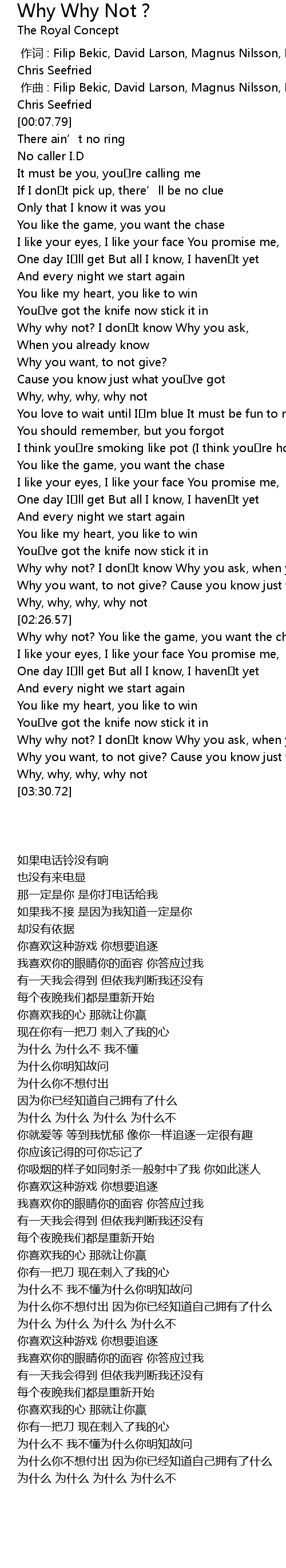 | [00:53.94] | Why why not? I don t know Why you ask, |