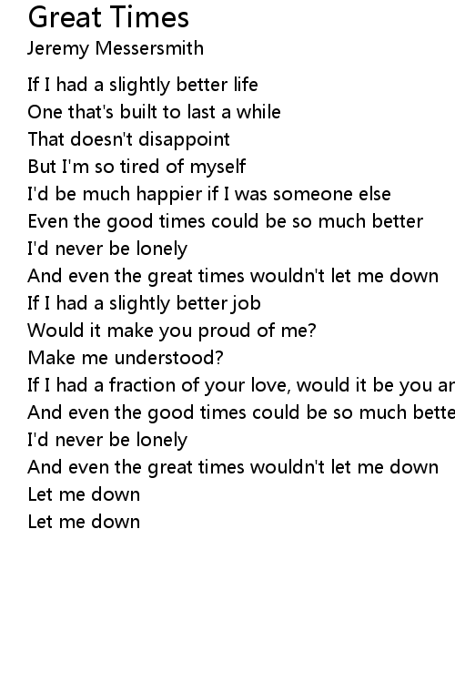 And even the great times wouldn't let me down |