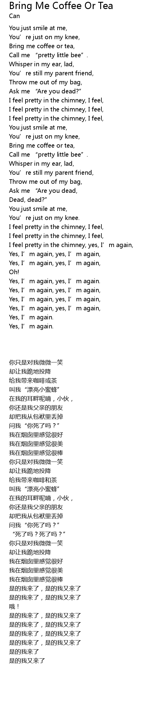 | [03:40.82] | I feel pretty in the chimney, yes, I' m again, |
