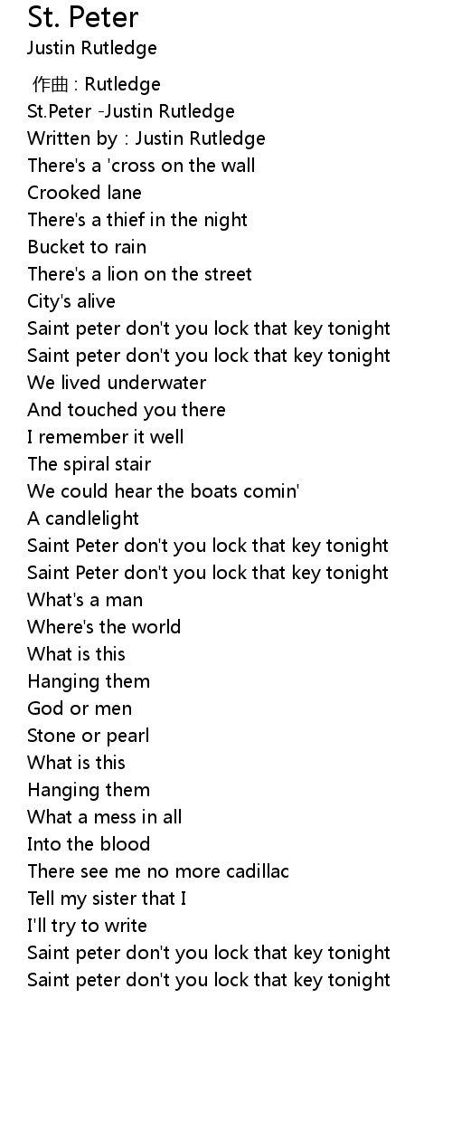 | [00:00.215] | St.Peter -Justin Rutledge |