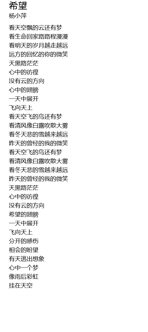| [01:43.74] | 看天空飞的鸟还有梦 |
