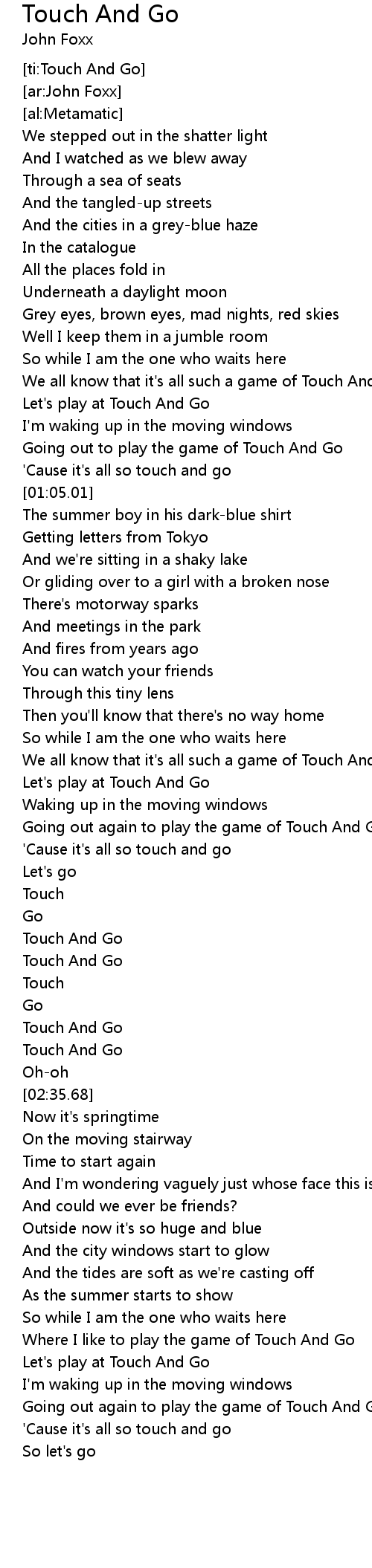 | [03:16.26] | Where I like to play the game of Touch And Go |