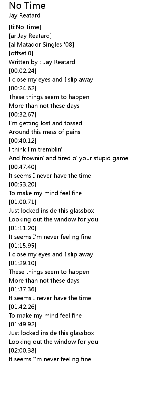 | [00:43.57] | And frownin' and tired o' your stupid game |