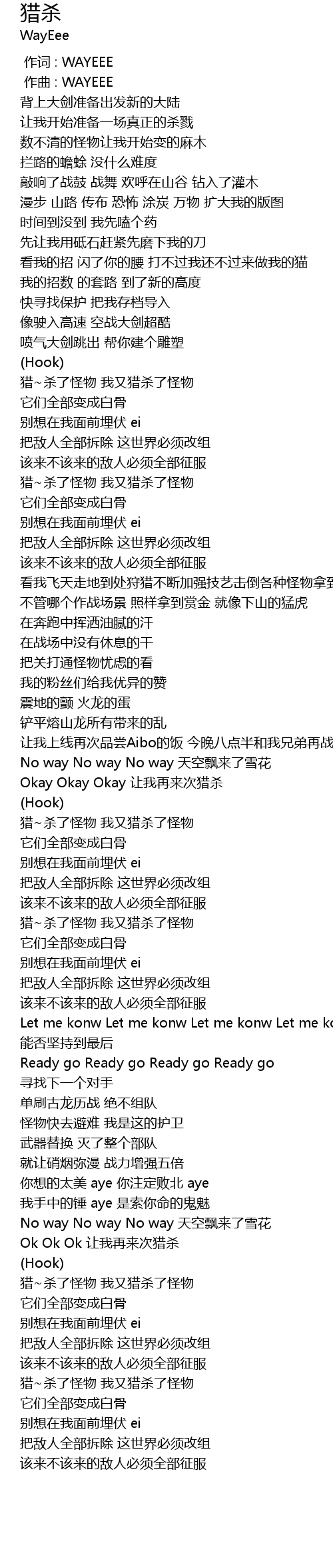 | [02:50.815] | 猎~杀了怪物 我又猎杀了怪物 |