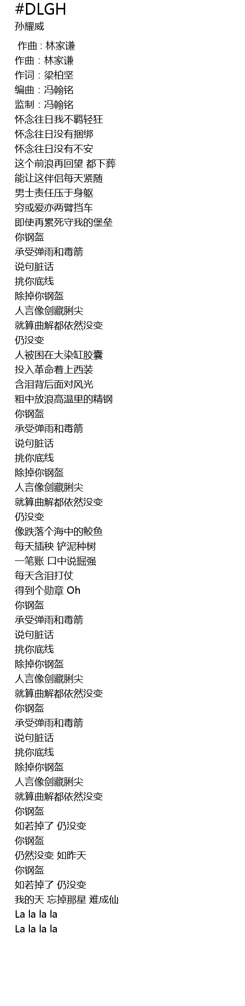 | 歌曲 | #DLGH |