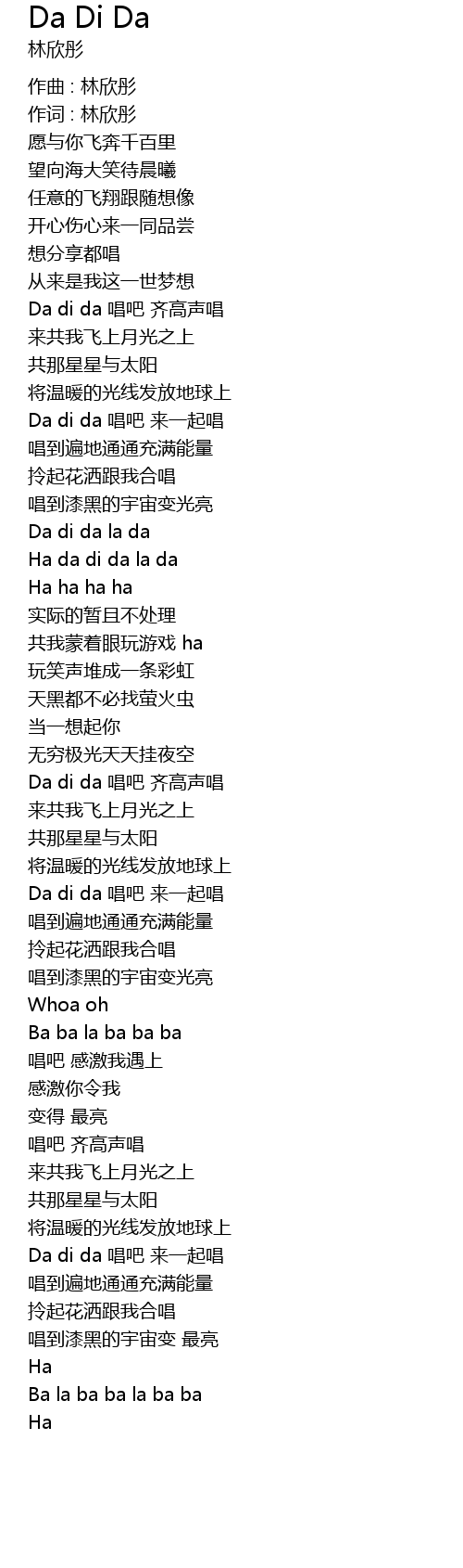 | [01:19.74] | Ha da di da la da |