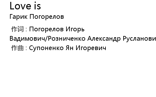 作词 : Погорелов Игорь Вадимович/Розниченко Александр Русланович