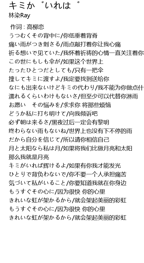 | [02:38.696] | きれいな虹が架かるから/就会架起美丽的彩虹 |