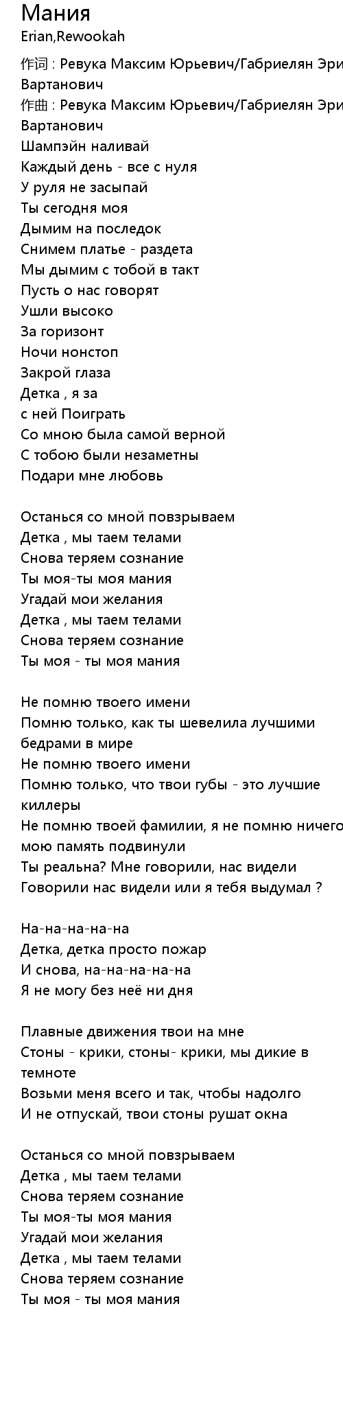Мания 歌词