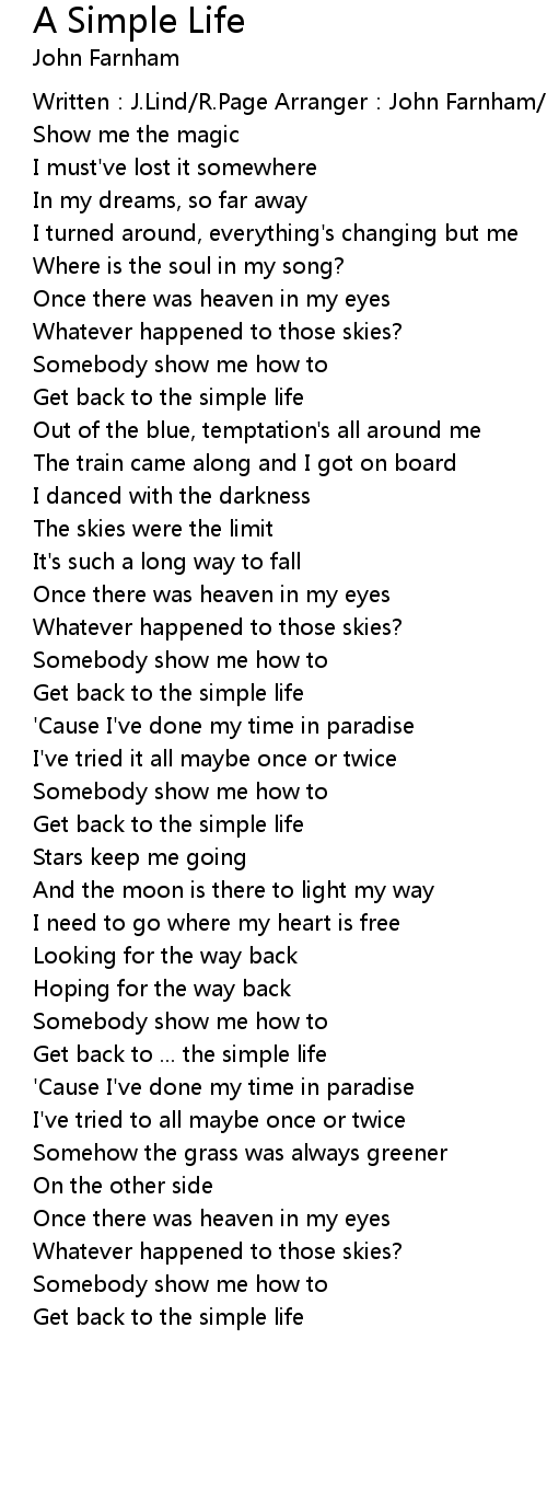 | Written:J.Lind/R.Page Arranger:John Farnham/Chong Lim/Ross Fraser | |