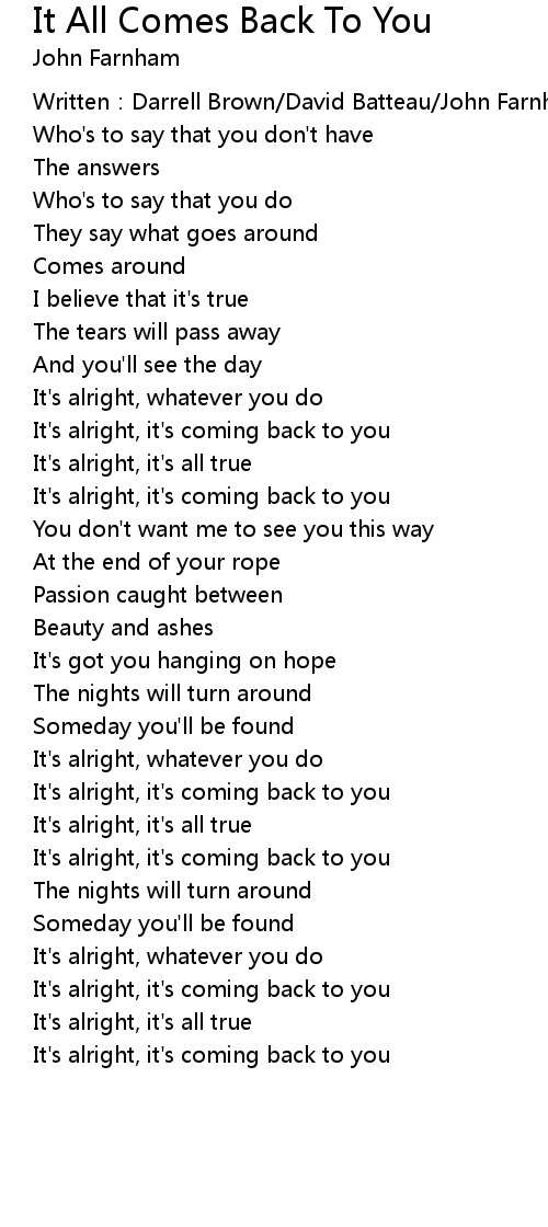 | Written:Darrell Brown/David Batteau/John Farnham/Ross Fra | |