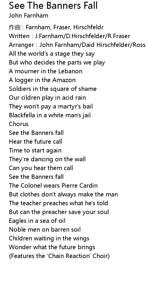 | Arranger:John Farnham/Daid Hirschfelder/Ross Fraser | |