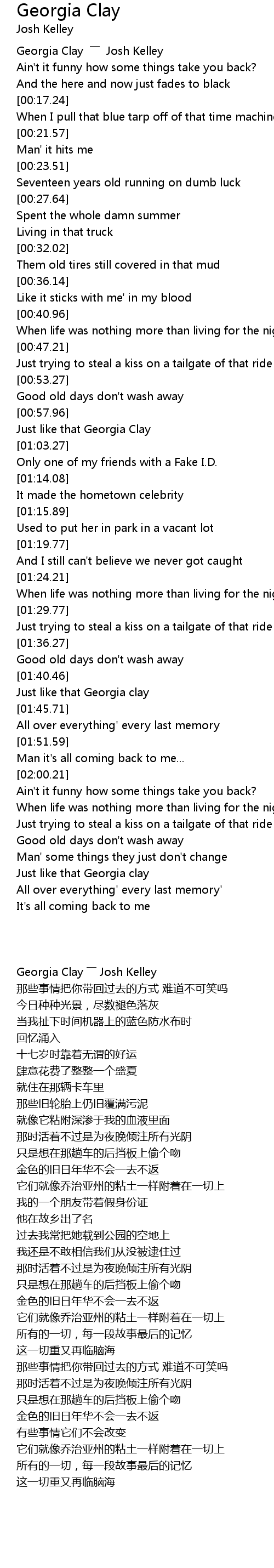 | [00:01.72] | Georgia Clay Josh Kelley |
