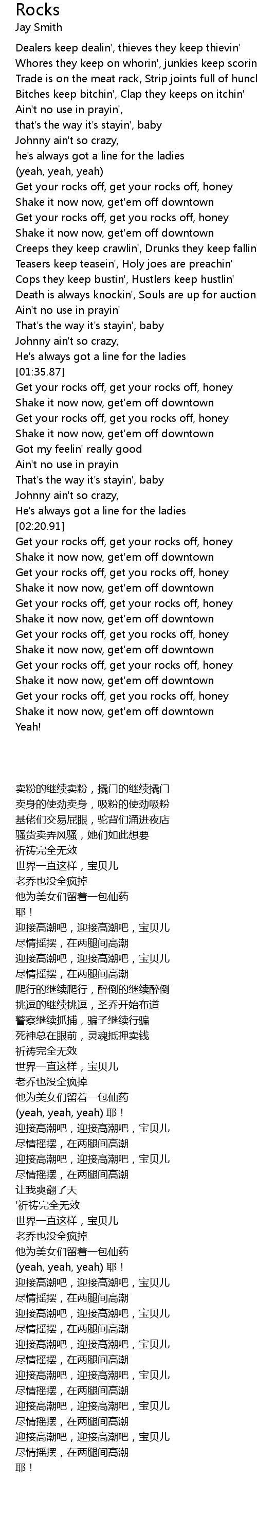 Get your rocks off, get your rocks off, honey |