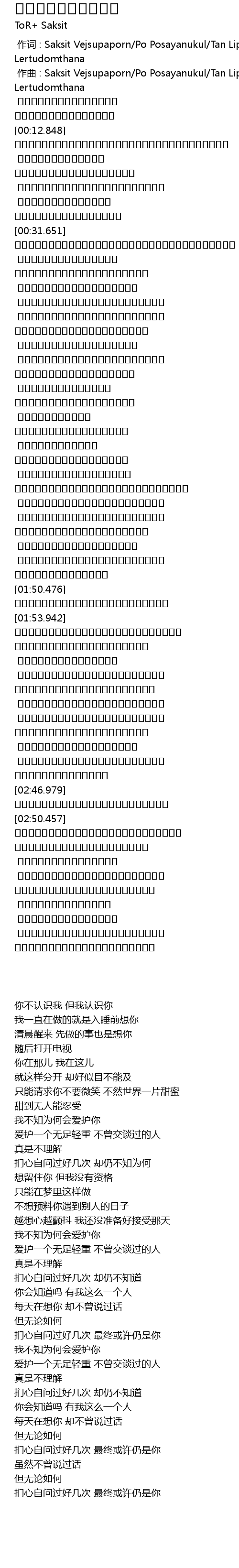 | [00:01.000] | zuo qu : Saksit Vejsupaporn Po Posayanukul Tan Liptapallop Panithi Lertudomthana |