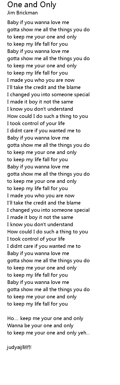 | to keep me your one and only | |