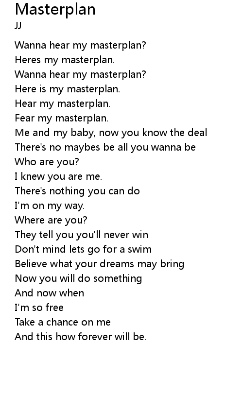 | Wanna hear my masterplan? | |