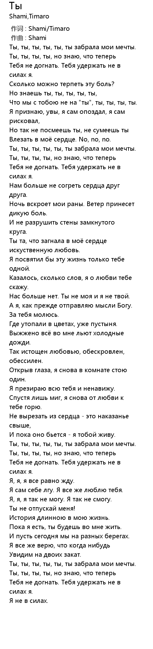 Ты 歌词