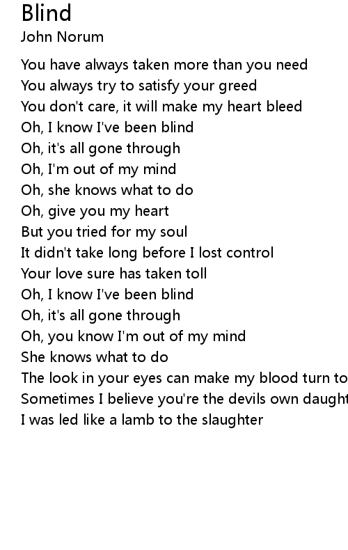 Oh, I know I've been blind |