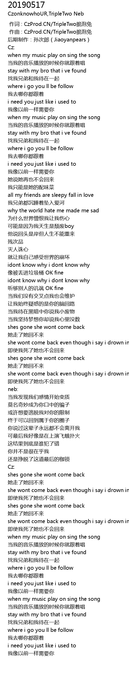 | [00:00.000] | 作词 : CzProd.CN/TripleTwo脆泡兔 |