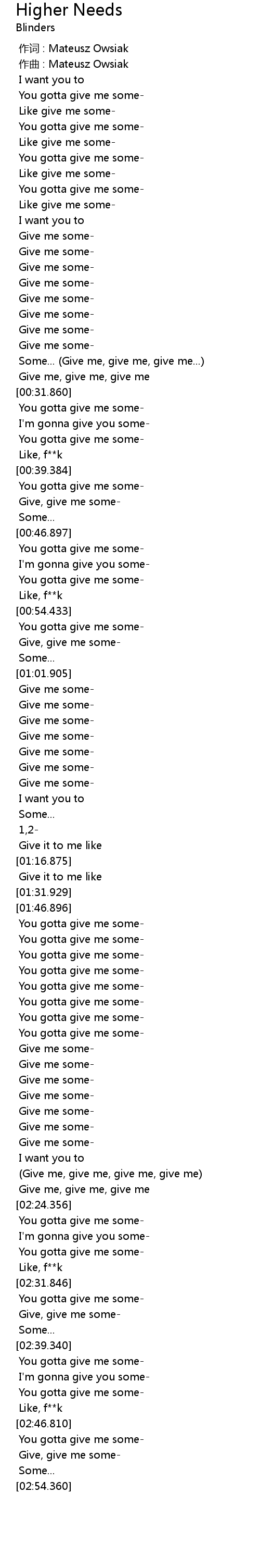 | [02:20.593] | Give me, give me, give me, give me |