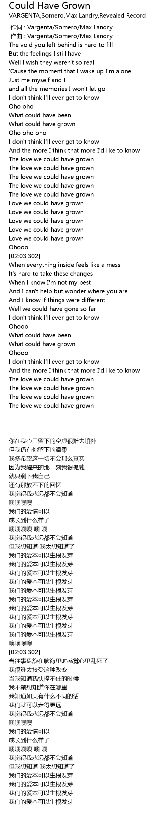 | 歌曲 | Could Have Grown |