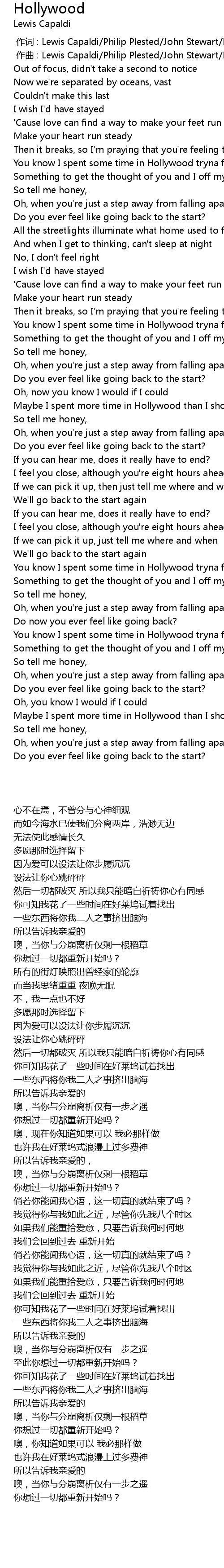 | [00:00.000] | 作词 : Lewis Capaldi/Philip Plested/John Stewart/Kane Parfitt |