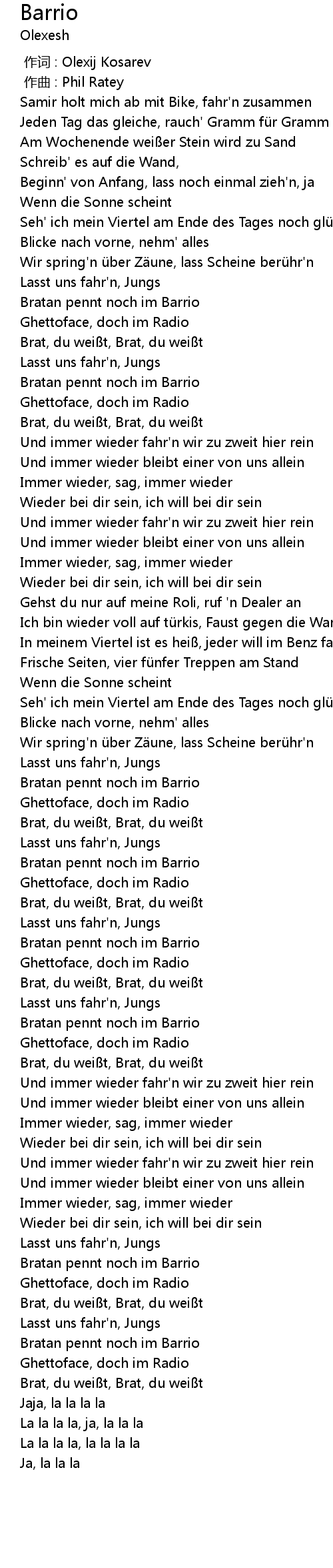 | [00:41.12] | Bratan pennt noch im Barrio |