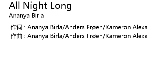 | [00:00.000] | 作词 : Ananya Birla/Anders Frøen/Kameron Alexander/Kevin Hogdahl |