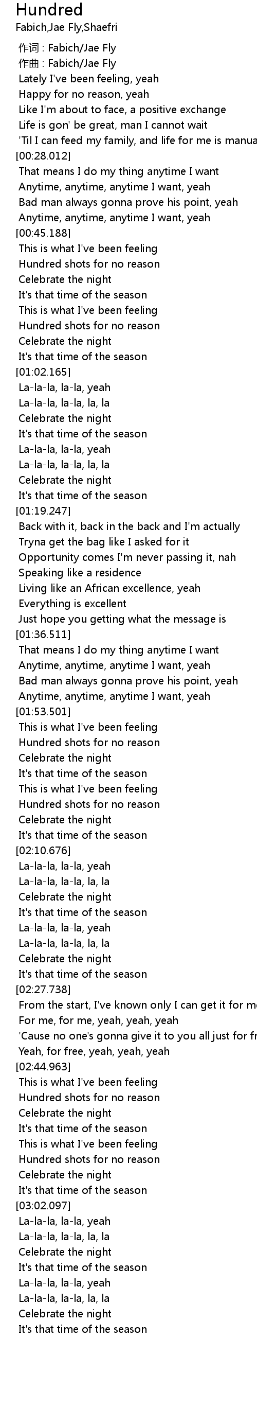 | [00:00.000] | 作词 : Fabich/Jae Fly |
