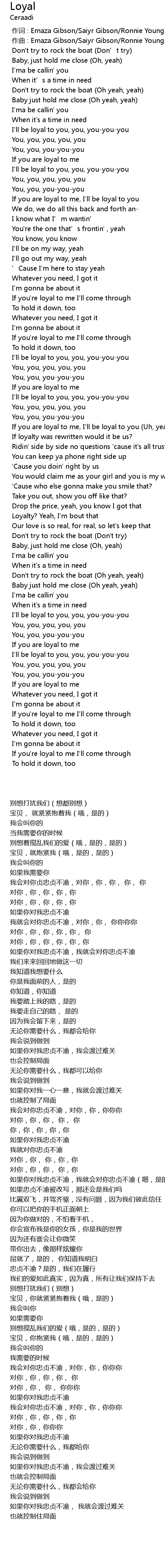 | [01:49.420] | If you are loyal to me, I' ll be loyal to you Uh, yeah, listen |