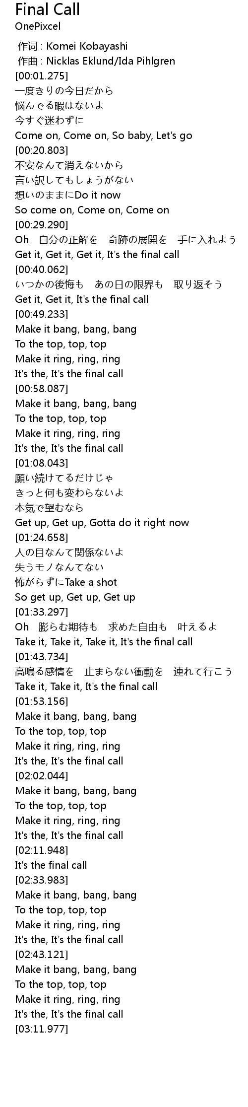 | [00:45.899] | Get it, Get it, It' s the final call |