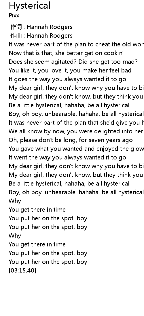 | [02:14.09] | Be a little hysterical, hahaha, be all hysterical |