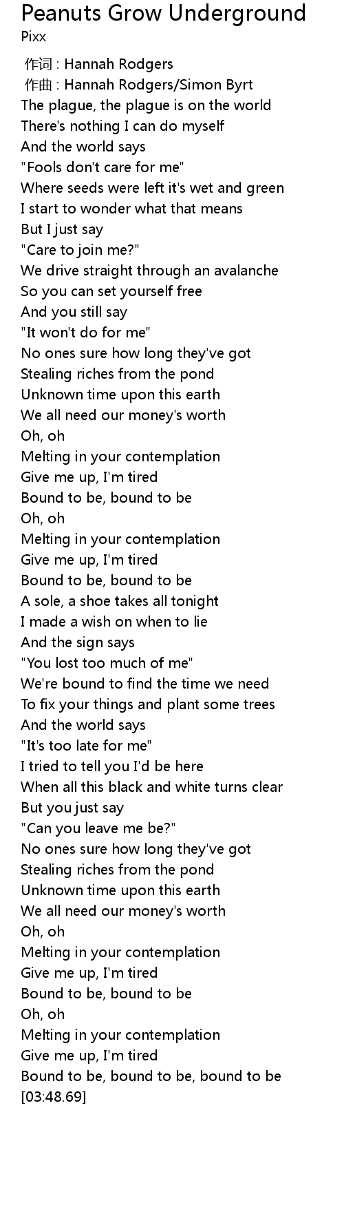 | 歌曲 | Peanuts Grow Underground |