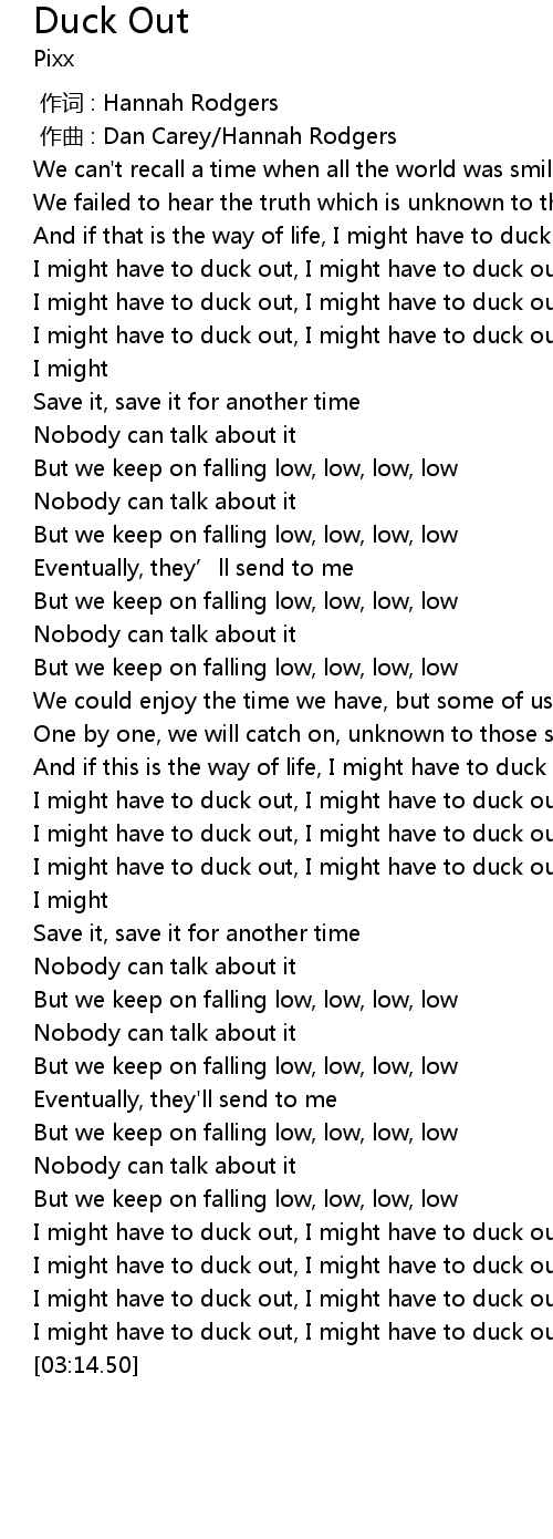| [03:00.95] | I might have to duck out, I might have to duck out |