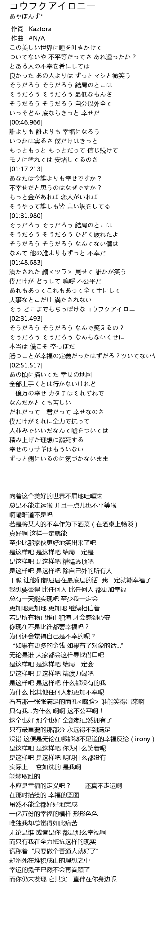 | [02:03.828] | 没错 这便是无论在哪都微不足道的幸福反论(irony) |