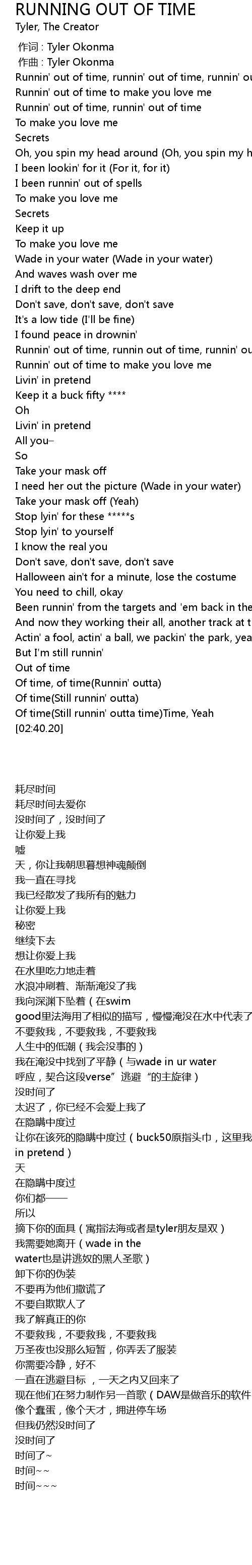 | [00:00.000] | zuo ci : Tyler Okonma |