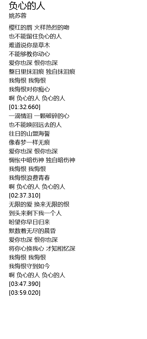 | [02:23.930] | 啊 负心的人 负心的人 |