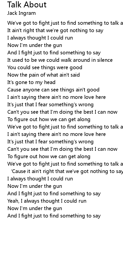 | ' Cause it ain' t right that we' ve got nothing to say | |