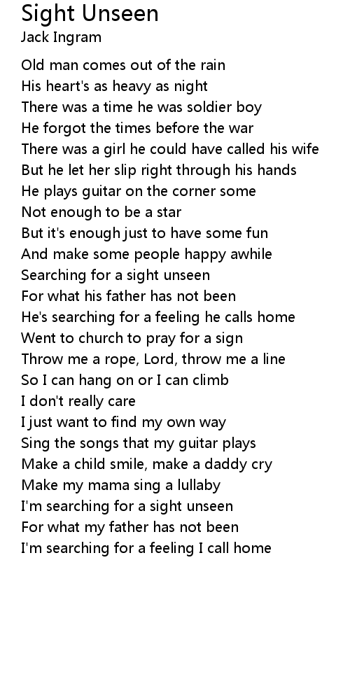 I'm searching for a sight unseen |