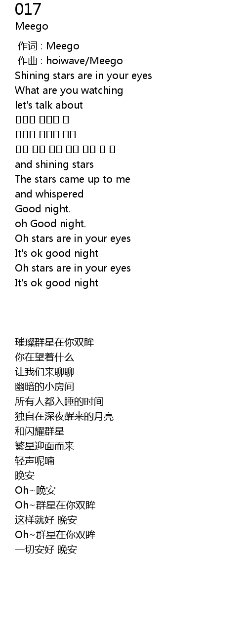 | [00:00.000] | 作词 : Meego |