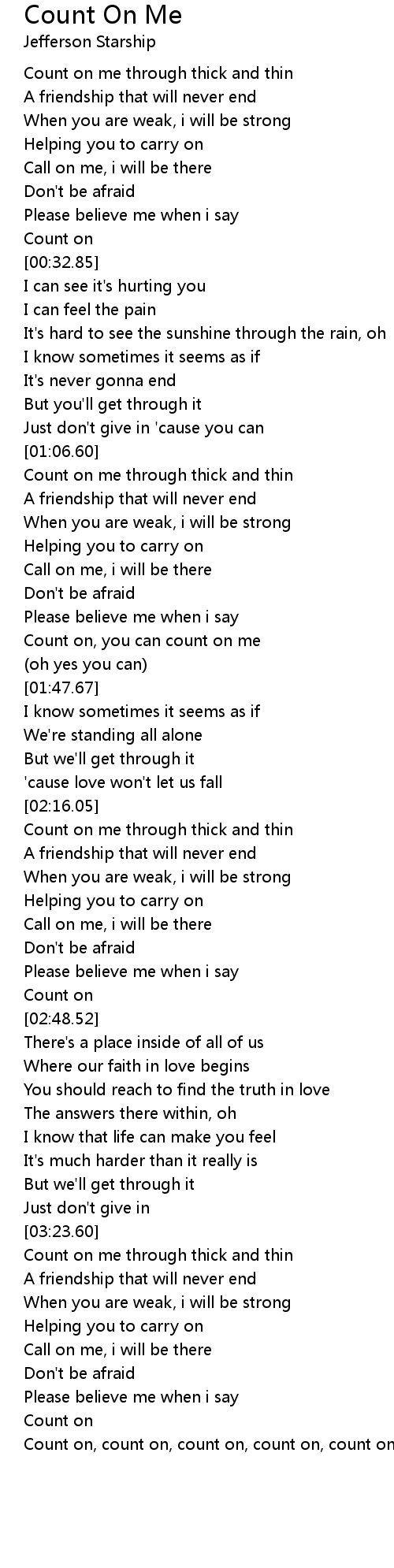Count on, count on, count on, count on, count on, count on me |