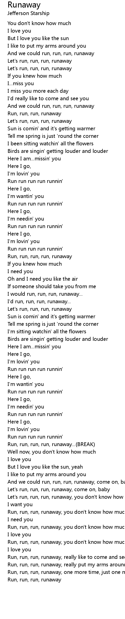 Run, run, run, runaway, really put my arms around you |
