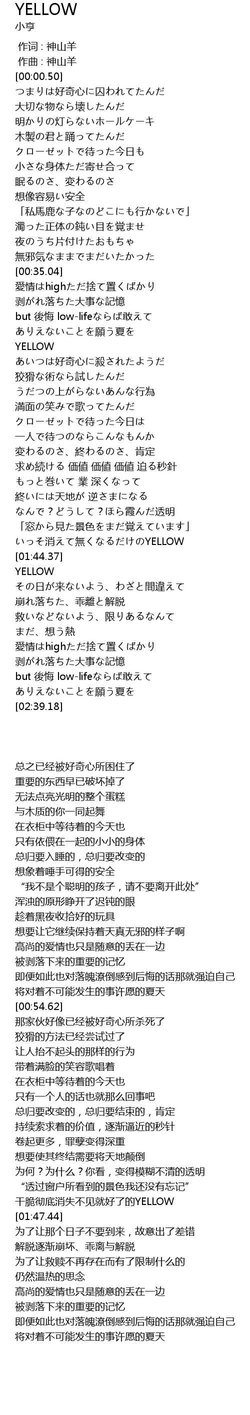 | [01:39.46] | いっそ消えて無くなるだけのYELLOW |