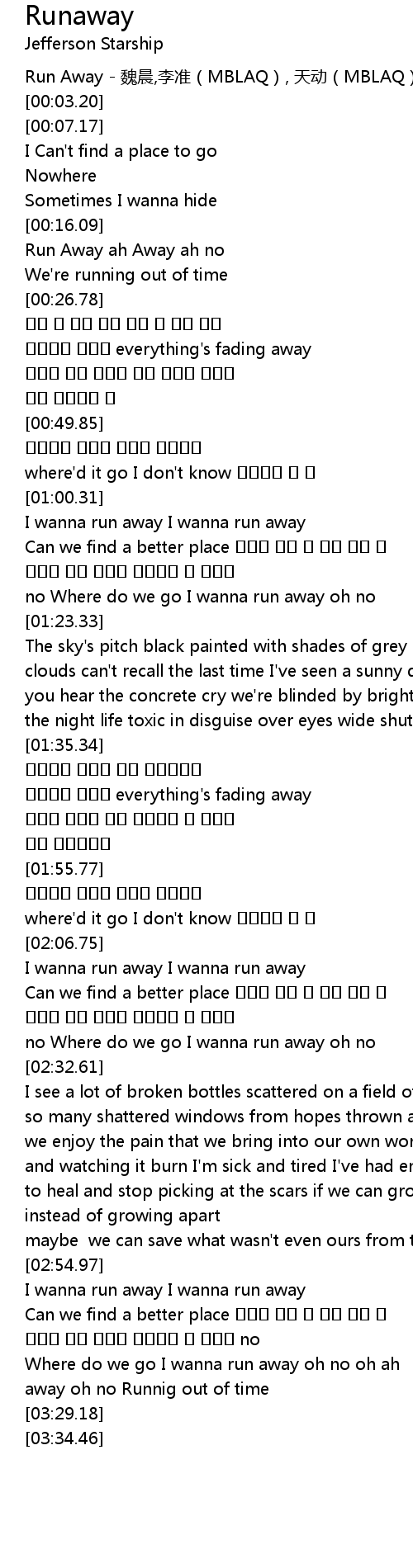 | [00:00.82] | Run Away wei chen, li zhun MBLAQ, tian dong MBLAQ |